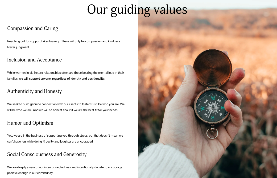 This was one of the very first pages of website copy I wrote for my business back in 2024. And it was so easy to write because I mean it and try to embody it every day. Here's a screenshot: